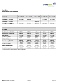 Preisliste für zusätzliche Leistungen ALLGEMEIN Mitnahme des Anschlusses bei Umzug innerhalb des Einzugsgebiets Produktwechsel Bearbeitungsgebühr zur Einrichtung der Öffentliche IPv4-Adresse (nach…